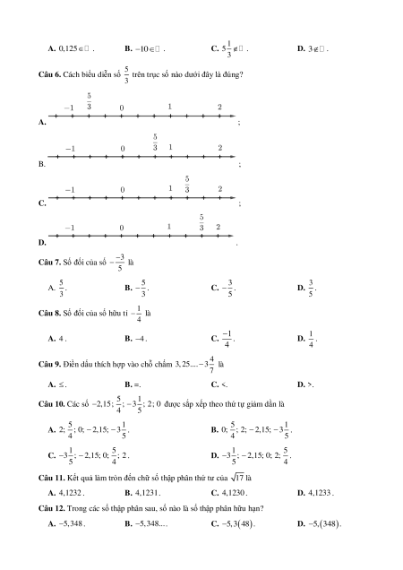 Câu 7. Số đối của số là 5 5 5 3 3 A. . B. . C. . D. . 3 3 5 5 1