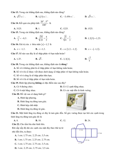 Câu 13. Trong các khẳng định sau, khẳng định nào đúng? A. 13 . B. 1,3 . C. 3 ,456 . D. 5 . 5 10 20 . 5