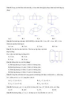 Câu 23. Trong các hình khai triển dưới đây, có bao nhiêu hình gấp lại được thành một hình lăng trụ đứng? A. 2. B. 3. C. 4. D. 5.
