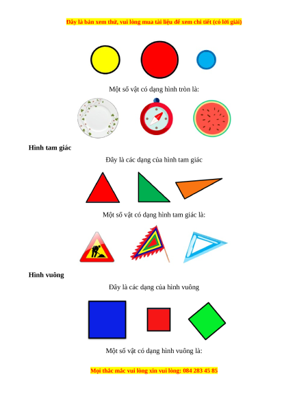 Một số vật có dạng hình tròn là: Hình tam giác
