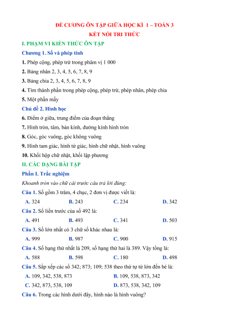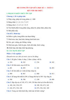 ĐỀ CƯƠNG ÔN TẬP GIỮA HỌC KÌ 1 – TOÁN 3 KẾT NỐI TRI THỨC