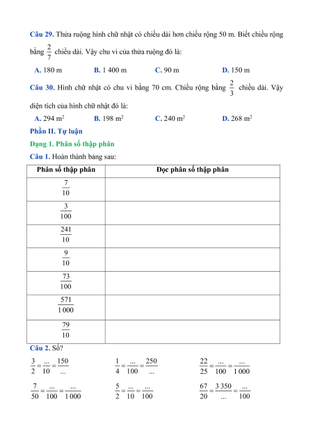 Câu 7. Phân số nào dưới đây là phân số thập phân? A. 5 B. 2 C. 7 D. 17 3 9 2 100