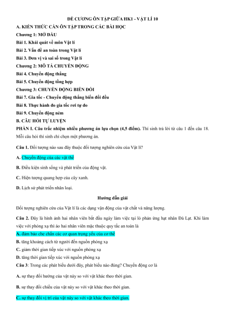 ĐỀ CƯƠNG ÔN TẬP GIỮA HK1 - VẬT LÍ 10