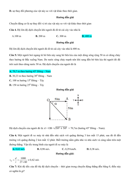 Câu 5: Một người bơi ngang từ bờ bên này sang bờ bên kia của một dòng sông rộng 50 m có dòng chảy