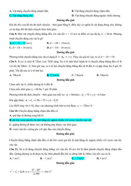 Câu 9. Ta có A cách B 72km. Lúc 7h30 sáng, Xe ô tô một khởi hành từ A chuyển động thẳng đều về B