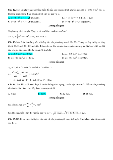 Câu 12. Một vật chuyển động thẳng biến đổi đều với phương trình chuyển động là: 2