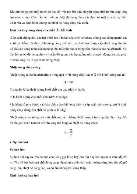 đó chuyển hoàn toàn từ thể rắn sang thể lỏng tại nhiệt độ nóng chảy: Q m 4. Sự hoá hơi Sự bay hơi