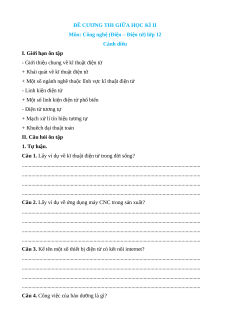 Đề cương ôn tập giữa kì 2 Công nghệ 12 Điện, Điện tử Cánh diều