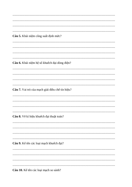 Câu 9. Kể tên các loại mạch khuếch đại?