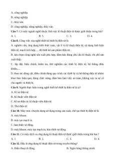 Câu 6. Thiết bị điện tử trong sản xuất A. công nghiệp. B. nông nghiệp. C. thủy sản.