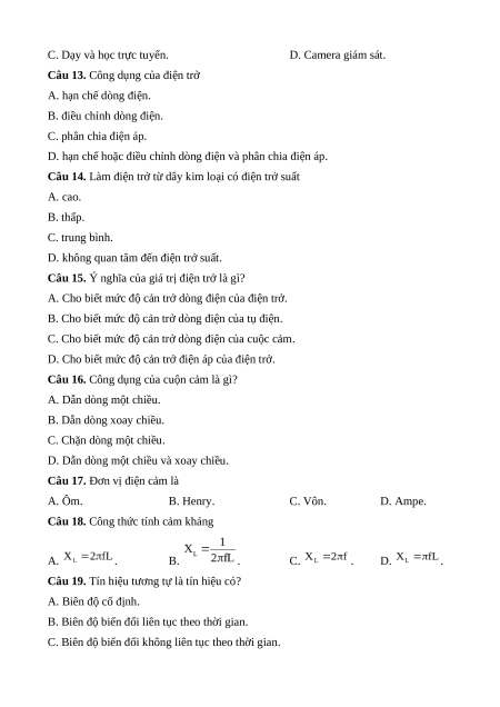 Câu 12. Đâu là ứng dụng kĩ thuật điện tử trong truyền thông? A. Điện thoại di động. B. Ngân hàng thông minh.