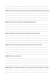 Câu 5. Thức ăn thủy sản được chia thành những nhóm nào?