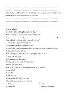 Câu 1. Có mấy vai trò của giống trong nuôi thủy sản? A. 1 B. 2 C. 3 D. 4