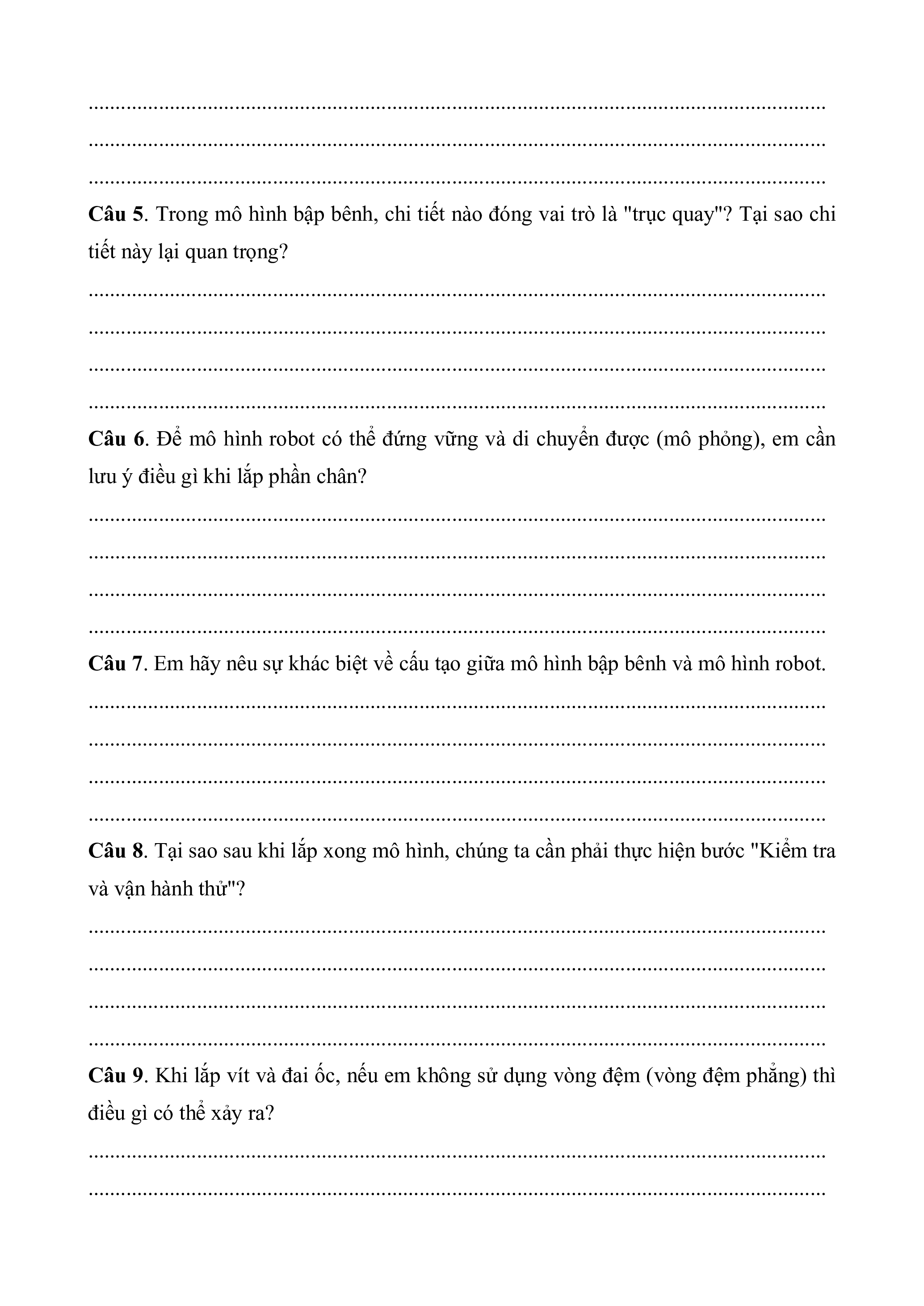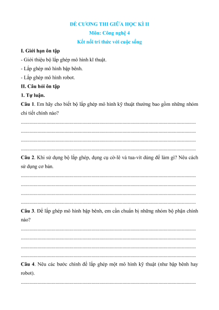 - Lắp ghép mô hình bập bênh. - Lắp ghép mô hình robot. II. Câu hỏi ôn tập 1. Tự luận.