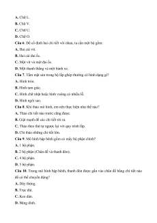Câu 5. Chi tiết "Thanh chữ U" trong bộ lắp ghép có hình dạng giống chữ gì? A. Chữ L. B. Chữ V. C. Chữ U. D. Chữ O.