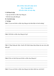 Đề cương ôn tập Giữa kì 2 Công nghệ lớp 5 Kết nối tri thức