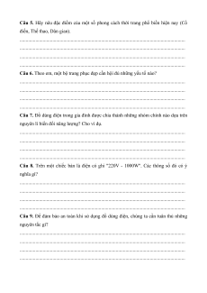 - Khái quát về đồ dùng điện trong gia đình. II. Câu hỏi ôn tập 1. Tự luận.