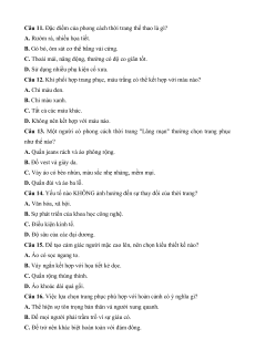 Câu 5. Hãy nêu đặc điểm của một số phong cách thời trang phổ biến hiện nay (Cổ