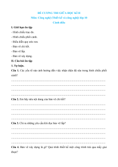 Đề cương ôn tập Giữa kì 2 Công nghệ Thiết kế 10 Cánh diều