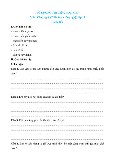 - Tailieugiaovien.com.vn giới thiệu bộ Đề cương ôn tập Giữa kì 2 Công nghệ 10 Thiết kế và công nghệ Cánh diều theo cấu trúc mới nhất nhằm giúp Giáo viên có thêm tài liệu tham khảo ra đề thi Công nghệ 10.