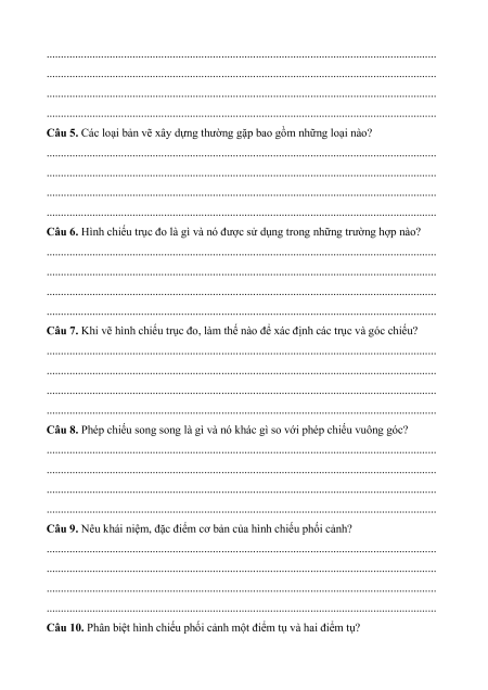 Câu 5. Các loại bản vẽ xây dựng thường gặp bao gồm những loại nào?