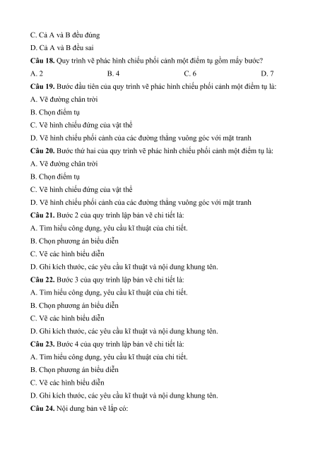 Câu 9. Lập bản vẽ chi tiết gồm mấy bước? A. 1 B. 2 C. 3 D. 4