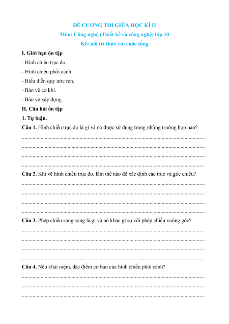 Đề cương ôn tập Giữa kì 2 Công nghệ Thiết kế 10 Kết nối tri thức