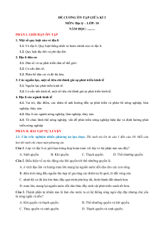 Đề cương ôn tập Giữa kì 2 Địa lí 10 Chân trời sáng tạo