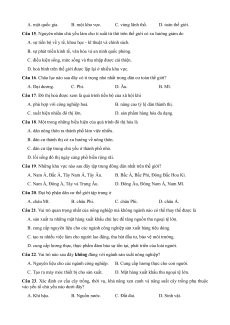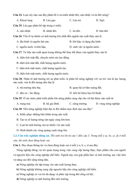 Câu 24. Loại cây nào sau đây phân bố ở cả miền nhiệt đới, cận nhiệt và ôn đới nóng? A. Khoai lang. B. Lúa gạo. C. Lúa mì. D. Ngô.
