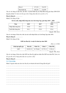 Câu 1. Quan sát bảng số liệu và chọn đúng hoặc sai ở mỗi ý a, b, c, d sau đây:
