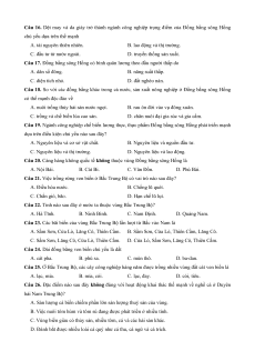 Câu 25. Ở Bắc Trung Bộ, các cây công nghiệp hàng năm được trồng nhiều vùng đất cát ven biển là A. lạc, mía. B. mía, cói. C. lạc, đay. D. cói, tiêu.