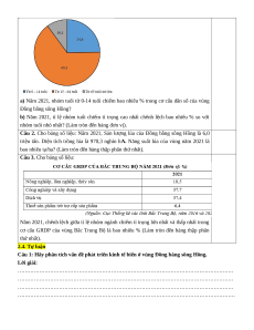 Câu 2. Cho bảng số liệu: Năm 2021, Sản lượng lúa của Đồng bằng sông Hồng là 6,0