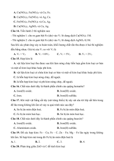 Câu 14. Tiến hành 2 thí nghiệm sau:
