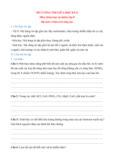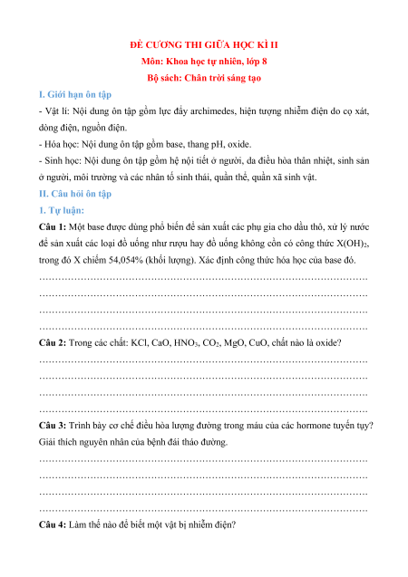 Đề cương ôn tập Giữa kì 2 Khoa học tự nhiên 8 Chân trời sáng tạo Cấu trúc mới