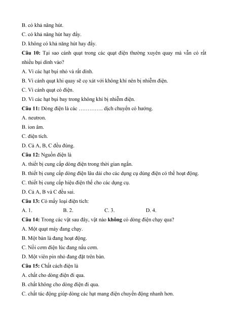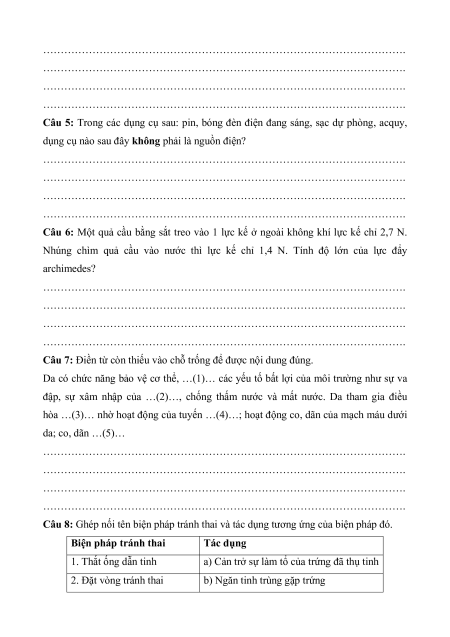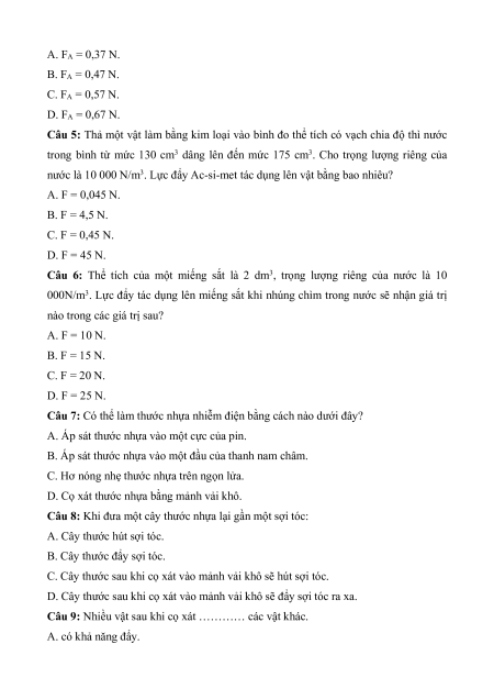 - Vật lí: Nội dung ôn tập gồm lực đẩy archimedes, hiện tượng nhiễm điện do cọ xát,
