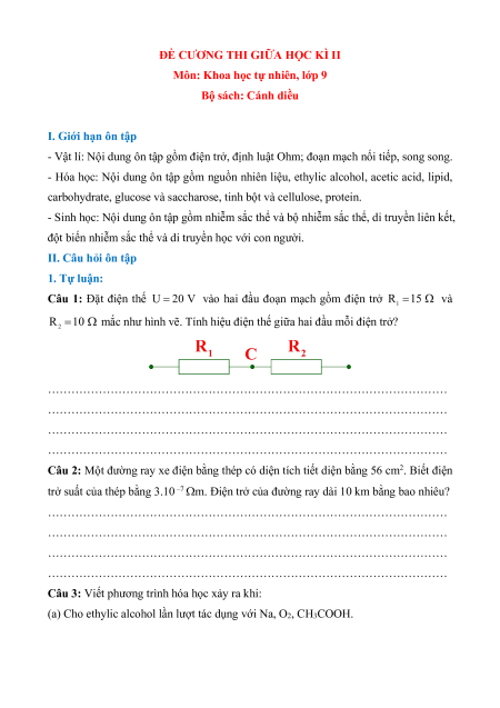 Đề cương ôn tập Giữa kì 2 Khoa học tự nhiên 9 Cánh diều