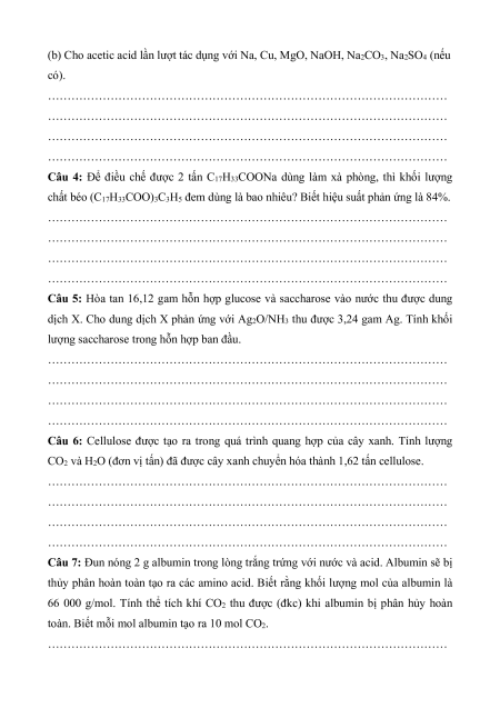 Câu 4: Để điều chế được 2 tấn C17H33COONa dùng làm xà phòng, thì khối lượng