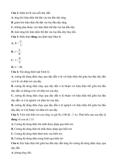 Câu 6: Khi hiệu điện thế giữa hai đầu dây dẫn tăng thì cường độ dòng điện chạy qua dây dẫn A. không thay đổi.