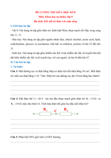 Đề cương ôn tập Giữa kì 2 Khoa học tự nhiên 9 Kết nối tri thức