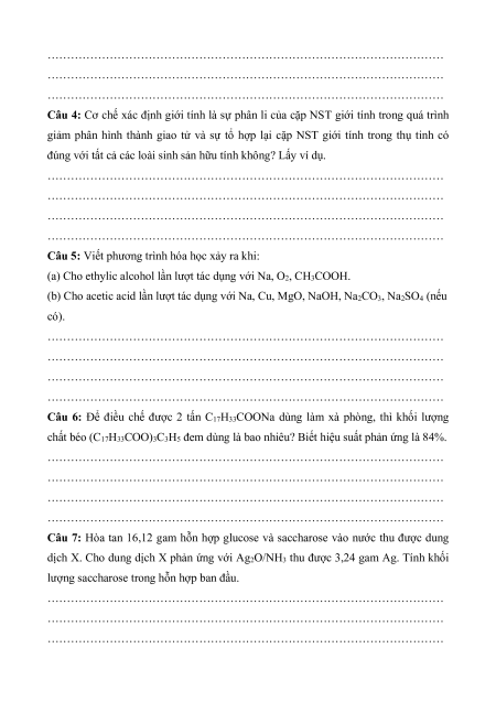 Câu 6: Để điều chế được 2 tấn C17H33COONa dùng làm xà phòng, thì khối lượng
