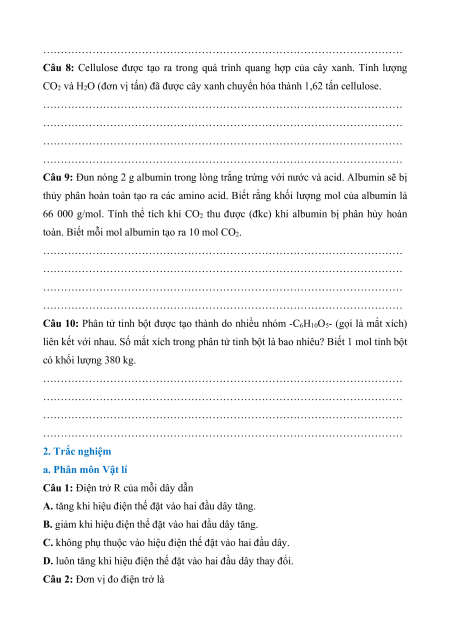 ………………………………………………………………………………………… 2. Trắc nghiệm a. Phân môn Vật lí