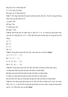 Câu 6: Khi hiệu điện thế giữa hai đầu dây dẫn tăng thì cường độ dòng điện chạy qua dây dẫn A. không thay đổi.