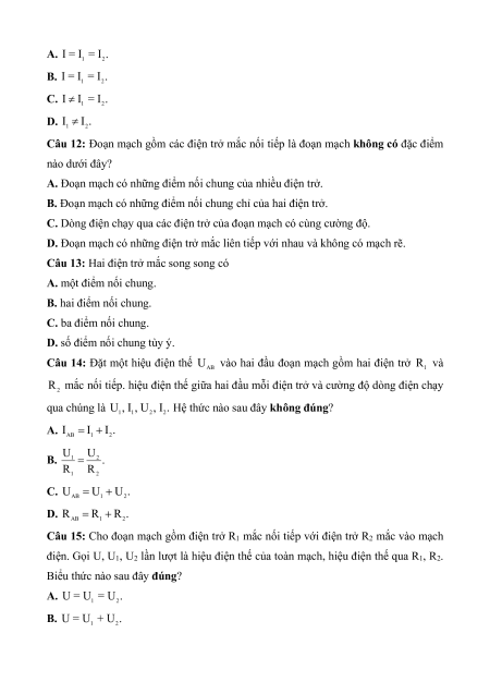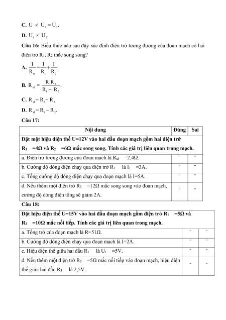 Câu 2: Đặt điện thế U 20 V vào hai đầu đoạn mạch gồm điện trở R 15 và 1