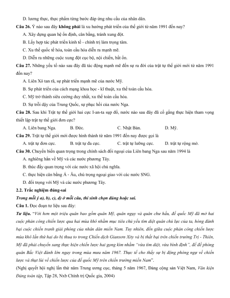 + Trật tự thế giới mới năm 1991 đến nay. Liên bang Nga và nước Mỹ từ năm 1991 đến nay