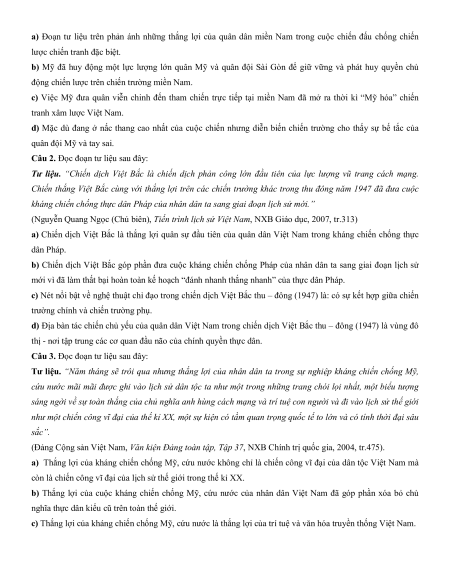 Câu 9. Nội dung nào sau đây không phản ánh đúng ý nghĩa của chiến thắng Điện Biên Phủ năm 1954 của quân dân Việt Nam?