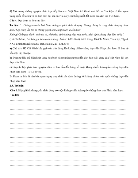Câu 5. Cuộc kháng chiến toàn quốc chống thực dân Pháp của nhân dân Việt Nam bùng nổ cuối năm 1946 vì nguyên nhân nào sau đây?