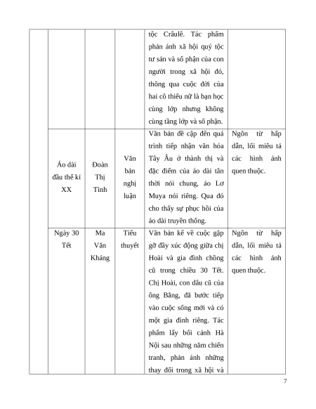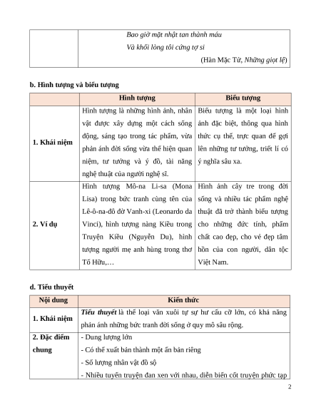 tượng người mẹ anh hùng trong thơ hồn của con người, dân tộc Tố Hữu,… Việt Nam. d. Tiểu thuyết Nội dung Kiến thức