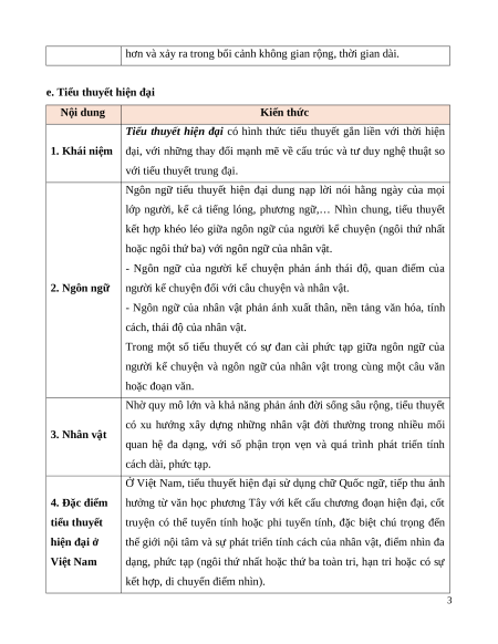 e. Tiểu thuyết hiện đại Nội dung Kiến thức