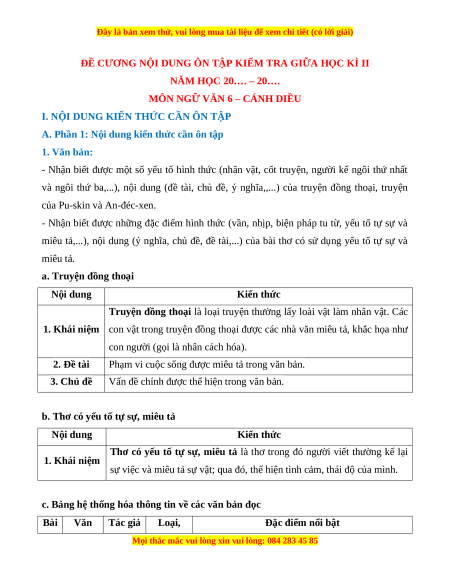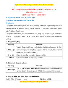 Đề cương ôn tập giữa kì 2 Ngữ văn 6 Cánh diều