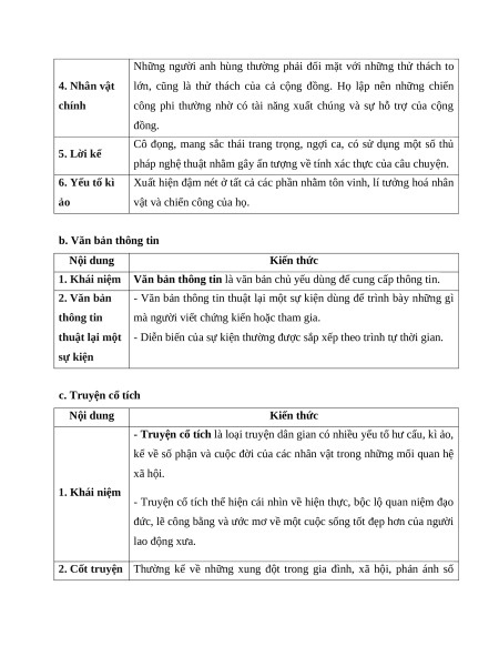 a. Truyện truyền thuyết Nội dung Kiến thức